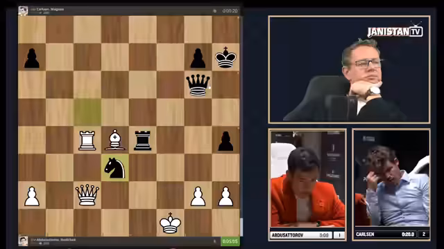00:04:21Nach einigen unklaren Zügen gerät Keymer in eine sichtlich nachteilige Stellung. Der Springer auf e6 dominiert das Brett, während Caruana einen strategischen Rückzug erwägt. Die Stellung erscheint normal, aber für Schwarz (Keymer) ist sie unangenehm und bedrohlich. Der Kommentator betont, wie entscheidend ein schnellerer und klarer Zug für Keymer wäre, um nicht weiter ins Hintertreiben zu geraten. Die Gedankengänge von Keymer werden als zu langsam kritisiert, was zu Frustration im Chat und bei den Kommentatoren führt. Es wird die Frage aufgeworfen, ob Keymer die anstehende Entscheidungspartie überhaupt überstehen kann.