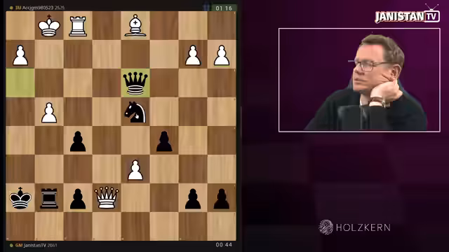 00:00:00Jan begrüßt die wenigen Zuschauer und beklagt seine längere Stream-Abwesenheit. Er kritisiert seine eigene Leistung bei der gestrigen Bundesliga, wo er in der Eröffnung einen entscheidenden Fehler machte. Selbstreflektierend analysiert er seine Elo-Kurve, die er als fallend beschreibt und vergleicht sie mit der Bitcoin-Kurve. Der Mangel an aktiver Vorbereitung und passivem Wissen wird als Hauptproblem identifiziert. Eine Woche in Wijk aan Zee und ein geheimer Kursaufenthalt werden als Gründe für die Stream-Pause genannt.