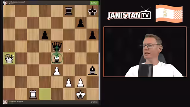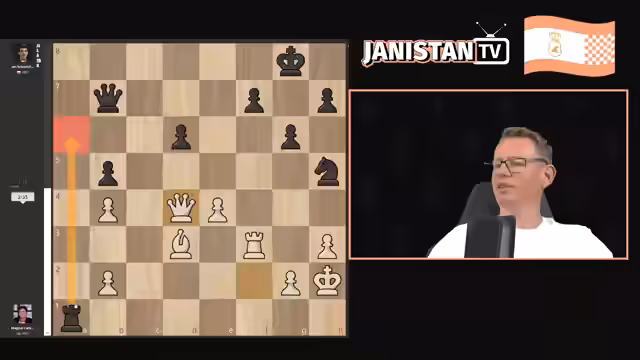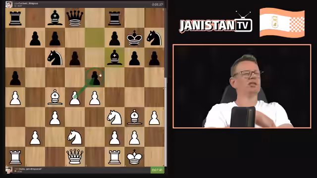 01:04:37Jan-Krzysztof Duda gewinnt das erste Match gegen Magnus Carlsen und zieht ins Finale ein. Der Streamer analysiert die entscheidenden Momente der Partie und würdigt Dudas klare Leistung. Gleichzeitig deutet er an, dass Carlsen seine unkonventionelle Spielweise weiter fortsetzen wird, was für zukünftige Partien spannend bleiben könnte. Kommentator und Zuschauer diskutieren mögliche Szenarien für das weitere Turnierformat und die Turnierbaum-Struktur.