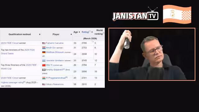00:32:07Herzlich willkommen zu meiner Vorschau-Serie zum Kandidaten-Tunier 2026, das Turnier, bei dem der nächste Herausforderer von Weltmeister Gukes gesucht wird. In diesen Videos gucken wir uns alle Teilnehmer einzeln an, gehen auf ihre Karriere, ihre Stärken und Schwächen und ihre Chancen ein. Und heute geht es um Fabiano Caruana, die Nummer 2 der Setzliste mit einer Elozahl. von 2795 qualifiziert über den Fidesz Circuit. Das ist dieser Turnierzyklus, wo es für jedes Turnier, was man spielt, Punkte kriegt, im Jahre 2024. Weil Kandidatenturnier nur alle zwei Jahre ist, konnte man sich sowohl 2024 als auch 2025 über den Circuit qualifizieren. Hier sehen wir Fabiano Caruana.