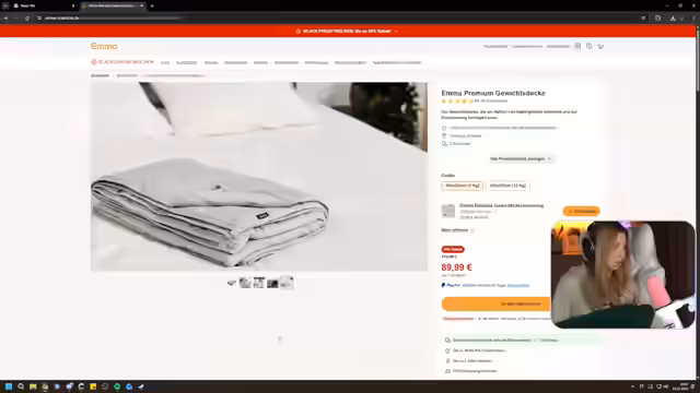 00:36:58Die Streamerin geht auf mehrere Produkte ein, die sie selbst nutzt und empfiehlt. Sie ist Partner von Snox und zeigt ihre Socken und Schlappen, für die ihr Communitymitglieder einen Rabattcode erhalten. Ausführlich stellt sie ihr neues Emma Elite Flauschkissen vor, das sie als extrem bequem und gut für ihre Nackenprobleme beschreibt, und bietet an, für jeden, der ein Emma-Bett kauft, ein Kissen zu gestalten. Die Community ist aktiv, zählt bald 10.000 Mitglieder im Discord und interagiert spielerisch über Schneeankündigungen in Hamburg.