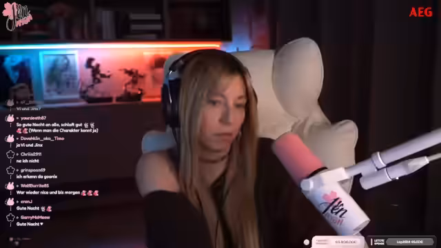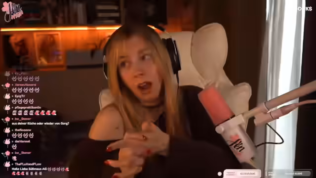 02:05:47Zu Beginn des Streams geht es um eine allgemeine Unterhaltung bezüglich Halsschmerzen und die damit verbundenen Medikamente. Die Streamerin diskutiert dabei verschiedene Möglichkeiten und fragt die Zuschauer nach Tipps. Parallel dazu gibt es eine Unterhaltung über technische Mikrofone wie die SM7B und das MV7, wobei sie Erfahrungen mit der Qualität der Aufnahmen teilt. Der Ton des Abschnitts ist eher locker und ungezwungen.