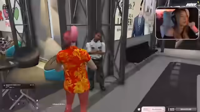 02:10:49Die Streamerin interagiert szenisch mit einem fiktiven Personal am Flughafen. Sie stellt sich als Personalausweis-Kontrolllerin dar, die einen Passagier zur Identitätsüberprüfung bittet. Die Situation entwickelt sich zu einer humorvollen Auseinandersetzung über die angebliche Verweigerung der Stempelung des Ausweises und endet mit der Androhung, den Passagier zur Herausgabe des Dokumentates zu zwingen.
