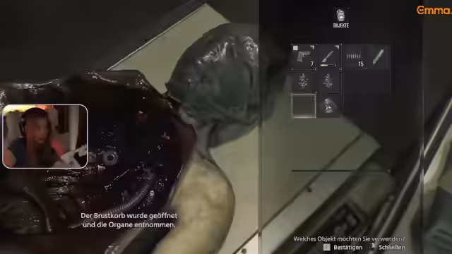 00:21:43Nachdem sie schnell gegessen hat, kündigt die Streamerin an, Resident Evil Requiem zu spielen. Zuvor möchte sie jedoch ein Video über Anästhesie ansehen. Sie begründet dies damit, dass sie eine große Angst vor Narkosen hat, die auf eine negative Erfahrung bei einer Weisheitszahn-OP zurückgeht. Sie beschreibt das Gefühl, in der Narkose durch Blutbahnen geschwommen zu sein, und erzählt, wie sie sich durch Zählen des Alphabets selbst beweisen wollte, dass sie bei Verstand war.