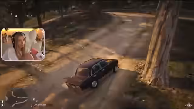 04:47:27Der Stream beginnt mit der Besprechung eines Verkehrsunfalls, der glücklicherweise nicht dramatisch war, da keine schweren Schäden am Fahrzeug festgestellt wurden. Kurz darauf wird eine Begegnung in den Weinwood Hills geschildert, bei welcher der Streamer und seine Freundin auf zwei Herren stießen, die sie baten, die Polizei abzulenken. Aus der darauffolglichen Flucht und dem Versuch, der Anfahrt zu entgehen, kam es zum Unfall.