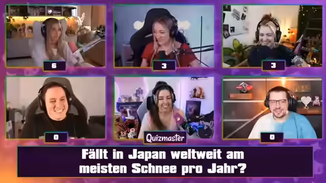 02:56:36Der Streamer testet das Wissen der Teilnehmer über historische Daten. Zuerst wird nach dem genauen Datum des Abwurfs der Atombombe auf Hiroshima gefragt. Die korrekte Antwort ist der 6. August 1945, was von Jen und Panik Fee richtig geschätzt wurde. Später geht es um die Anzahl der registrierten Erdbeben in Japan im Juni 2025, die über 1.000 betrug. Knister hatte mit 77 die beste, aber immer noch weit entfernte Schätzung abgegeben. Die Runden zeigen eine Mischung aus Geschichtswissen und statistischen Herausforderungen.