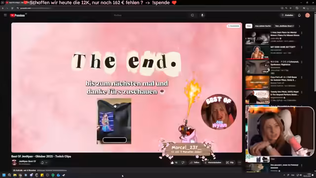 00:22:34Die Streamerin informiert ihre Zuschauer über ihren Zweitkanal 'Jenyan Chill', auf dem sie Live-Streams ohne Fokus auf Zuschauerzahlen oder spezifische Inhalte wie Reddit-RP veranstaltet. Sie erwähnt, dass sie dort bereits live war, jedoch leider ohne VOD, da sie vergessen hatte, die Funktion zu aktivieren. Ein weiteres wichtiges Thema ist die Zusammenarbeit mit Hannah, einer Community-Cutterin. Hannah hat bereits von sich aus Best-of-Videos für den Kanal geschnitten, und die Streamerin hat ihr angeboten, monatlich die Best-of-Videos zu schneiden und testweise Hochkant-Videos zu erstellen. Sie betont, dass sie Hannah dafür bezahlt und sehr zufrieden mit ihrer Arbeit ist, da Hannah bereits in der Community aktiv ist und den Bezug zu den Inhalten hat, was bei anderen Bewerbern fehlte. Das aktuelle Best-of-Video vom Oktober wird später auf ihrem Hauptkanal hochgeladen, aber die Zuschauer können es sich bereits auf Hannahs Kanal ansehen. Sie bittet die Community um Feedback für Hannahs Arbeit.
