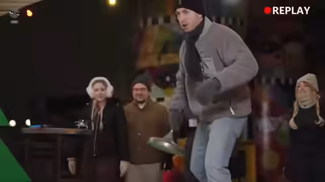 01:12:42Die vierte Kehre steht an, Team Rocket Beans muss drei Punkte aufholen, um das Spiel noch zu drehen. Die Nervosität ist spürbar, und Spieler versuchen mit riskanten Taktiken und außergewöhnlichen Würfen wie dem Schneetrick das Blatt zu wenden. Nachdem das Team den Sieg nur noch verwaltete, kam es durch einen entscheidenden Wurf zu einem Unentschieden. Im Anschluss folgte eine kurze Pause und ein Schnick-Schnack-Schnuck-Duell, um den Start für ein weiteres Spiel zu bestimmen.