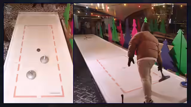 02:40:15Das Finale findet zwischen den Teams Eddie/Budi und Edo/Radler statt. Nach anfänglichem Gleichstand zieht Team Rocket Beans TV durch eine starke Leistung klar davon. Das Niveau des Spiels ist sehr hoch, mit präzisen Würfen und taktischen Manövern. Nach nur vier der geplanten sechs Kehren steht der Sieger mit 12 zu 0 fest. Team Rocket Beans TV gewinnt damit die Eistock-Weltmeisterschaft 2026.