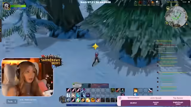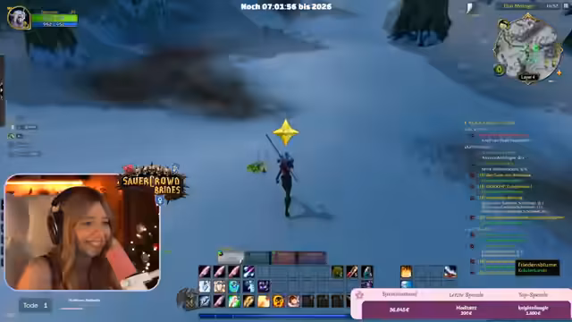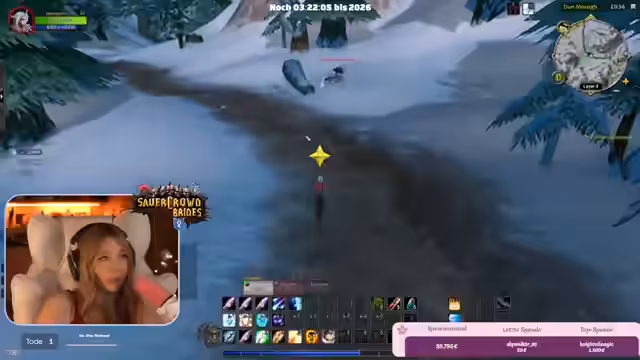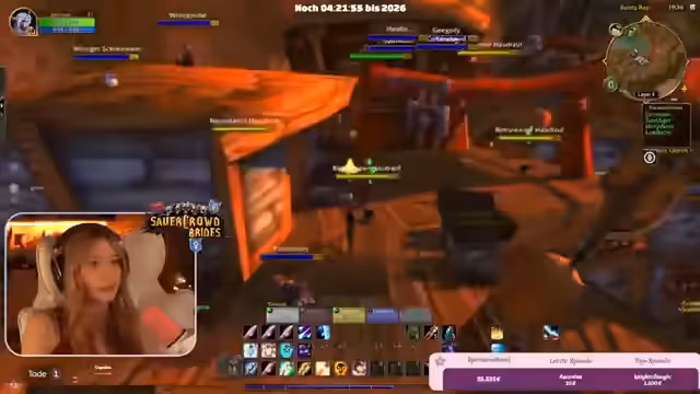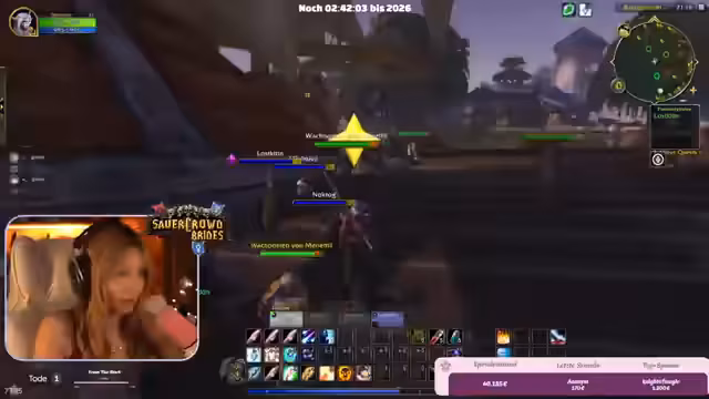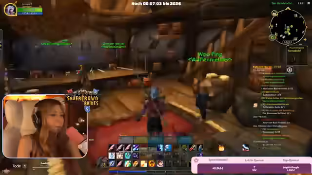 09:42:07Die Streamerin und ihre Mitspieler bereiten sich auf den Jahreswechsel in World of Warcraft vor. Sie planen, in der Hauptstadt Stormwind zusammenzukommen, um gemeinsam das Feuerwerk um Mitternacht anzusehen. Es kommt zu organisatorischen Herausforderungen, da die Spieler auf verschiedenen Spiel-Layern sind. Trotzdem gelingt es der Gruppe, sich kurz vor dem Countdown auf einer Brücke zu versammeln.