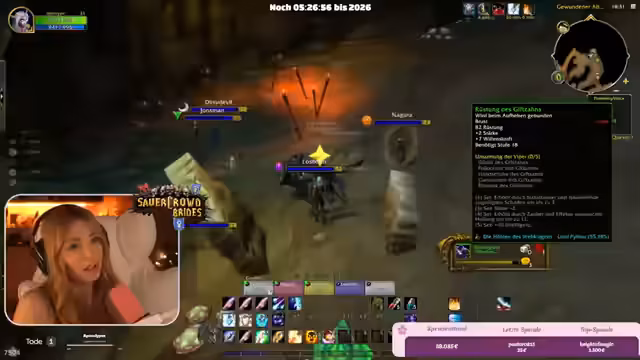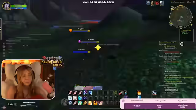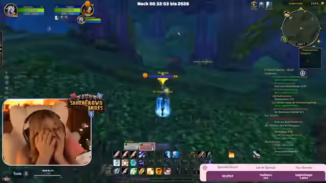 01:56:02Die Streamer spielen gemeinsam World of Warcraft (WoW) und nehmen dabei auch die Community mit. Sie koordinieren sich bei Quests, helfen sich gegenseitig in Dungeons und teilen ihre Fortschritte. Dabei kommt es auch zu Diskussionen über das Spiel und die Zeit. Ein Spieler ist überrascht, dass es Mittwoch ist, und ein anderer beschreibt WoW als "digitales Feuerwerk" für Nerds. Die Gruppe bewertet ihre Online-Freundschaften als genauso wertvoll wie reale Freundschaften und schätzt die gemeinsamen Interessen. Auch Pläne für einen gemeinsamen Skiurlaub im Februar werden besprochen.