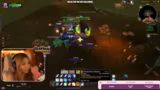 03:07:15Nach dem Tod startet der Streamer einen neuen Charakter, um den fortgeführten Stream fortzusetzen. Er muss sich dabei auf das Spiel konzentrieren und fragt nach Anweisungen, wie er vorgehen soll. Zusammen mit einem Mitspieler, der ihn portet, wird eine neue Gruppe aufgebaut. Er versucht, verpasste Quests nachzuholen und teilt Aufgaben mit den anderen. Die Gruppenbildung gestaltet sich jedoch etwas schwierig, da sie sich in einem Raid befinden und dies die Funktion einschränkt.