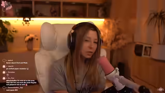 00:17:44Auf die Frage nach ihrem Befinden antwortet die Streamerin, dass ihr Zustand normal sei. Sie erwähnt, ihre Mutter wegen einer Lungenentzündung im Krankenhaus eingeliefert zu haben, was sie zwar belastet, aber aushaltbar sei. Sie berichtet von einer Lebensmittelvergiftung des Vortages und gibt an, sich anzustecken. Dennoch dominiert die positive Stimmung wegen bevorstehender Japanreise, zu der sie sich besonders freut, weil Freunde wie Kevin und Kaddi mitkommen. Ihre Japan-Gruppe wächst dadurch bereits kontinuierlich und weitere Personen haben ihr Interesse bekundet.