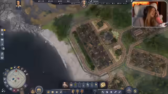 08:55:49Die Streamerin bewundert die von ihr gebauten Siedlungen, besonders die römische Villa, und kritisiert gleichzeitig den 'gammeligen' Sumpfbereich. Sie ist beeindruckt vom hohen Prestige-Wert, den Ornamente in der Sumpfsiedlung bringen, und gibt nach fast allen wichtigen Entscheidungen im Spiel die Niederlage an ihren Mitspieler 'Jen' zu. Sie bedankt sich für die 'extrem lustige und viel schlimmere, als ich dachte, Runde' und kündigt YouTube-Highlights an.