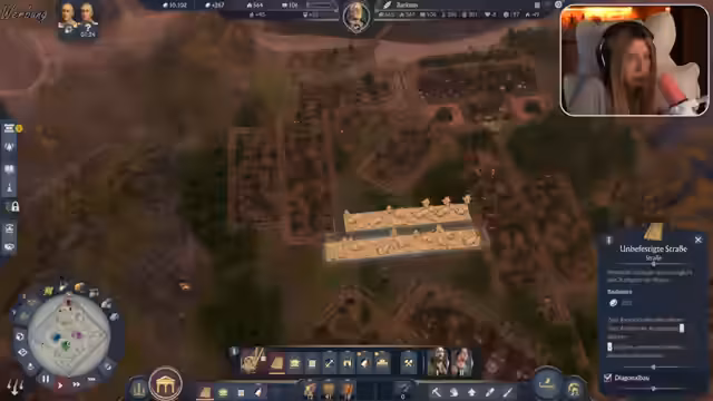 08:51:59Nach einer engen Abstimmung, die laut Streamer seine Thesen bestätige, geht es im Spiel weiter. Er beginnt, die Endphase der keltischen Bevölkerungsstufe zu erreichen und präsentiert die letzten verfügbaren Gebäude, darunter einen Erdofen und ein alternatives Theater. Es wird eine Anfrage des Kaisers für Ziegelsteine bekannt, die nicht erfüllt werden kann, und es wird die Möglichkeit angesprochen, eine neue Region namens Latium zu besiedeln, um Wein zu produzieren.