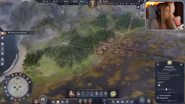 06:06:16Die Abstimmung im Chat fällt zugunsten des keltischen Weges aus, was zur Überraschung des wirtschaftlich orientierten Spielers führt. Die Konsequenz ist, dass nun keltische Gebäude und Technologien im Vordergrund stehen. Die ersten produzierten Güter sind Käse und Bier, und die Siedlung wird gezielt um den Sumpf herum ausgebaut, um das gewählte Thema zu stärken. Der Fokus verlagert sich nun auf die Produktion von Flechtwerk und die Einrichtung entsprechender Betriebe.