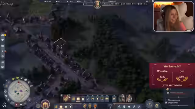 07:35:24Der Stream beginnt mit einem philosophischen Austausch über die Bedeutung, Gleichgesinnte zu finden, und einer hitzigen Debatte über die Spielfortschritte. Es geht um die Notwendigkeit, eine zweite Insel zu kaufen, um die keltische Bevölkerungsstufe zu erhöhen und schließlich Römer zu erhalten, um den Sumpf trockenzulegen. Dabei wird die Planung von Jen kritisiert, die das Geld für Deko-Objekte anstatt für wichtige Spielziele ausgibt, was zu einem sarkastischen 'Du-Problem' führt. Der Fokus liegt auf der strategischen und wirtschaftlichen Entwicklung des Spiels, während die Chat-Interaktion den Verlauf aktiv beeinflusst.