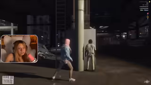 05:00:06Nach dem Treffen mit dem Opa wechselt die Szene zu einem Parcour-Training, bei dem die Streamerin, unterstützt vom Chat, einen Parkour-Versuch startet. Es kommt zu technischen Schwierigkeiten bei der Steuerung. Die Stimmung kippt, als die Streamerin von einem "Goldenen" angegriffen und bewusstlos geschlagen wird. Ein Chaotischer Rettungsversuch folgt, bei dem sie von einem Krokodil angegriffen wird, aber mit einem Ballon überlebt.