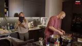01:12:41Parallel zum Roast Beef wird die Gemüsepfanne zubereitet. Zuerst wird das Gemüse, hauptsächlich Brokkoli und Karotten, gewaschen und geschnitten. Anschließend wird es blanchiert, was bedeutet, dass es für kurze Zeit in kochendes Wasser getaucht und sofort in Eiswasser abgeschreckt wird, um Bissfestigkeit und Farbe zu erhalten. Während der Zubereitung unterhalten sich die beiden über ungewöhnliche Küchen und persönliche Lebensentscheidungen.