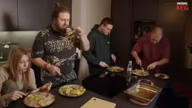 In einem professionellen Kochstudio wurde ein mehrgängiges Menü zubereitet. Der Fokus lag auf einem Roast Beef, Rahmgemüse und einem Schokoladen-Lava Cake. Unter Verwendung von Geräten von AEG wurde das Hauptgartstück, das Roast Beef, bis zur perfekten Kerntemperatur gegart. Im Anschluss wurde das Dessert im Ofen gebacken und serviert.