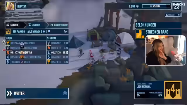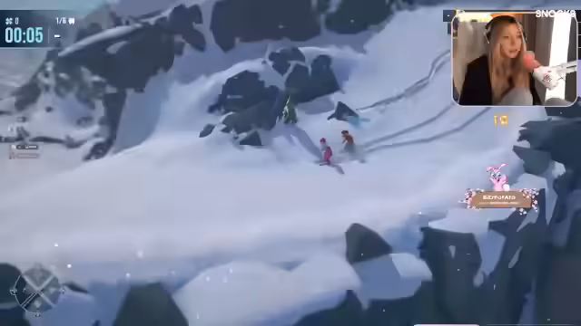 01:52:54Nach einigem Hin und Her startet das Spiel, bei dem alle Teilnehmer snowboarden. Der Streamer erwähnt Probleme mit den Steuerungstasten, besonders bei R2 zum Gasgeben. Es kommt zu Diskussionen über Spielmechaniken wie das Herunterfahren in die Hocke und illegale Abkürzungen. Auch technische Probleme wie Internetverbindungsprobleme bei einigen Teilnehmern werden thematisiert.