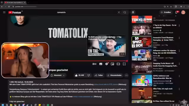 02:02:38Der Streamer führt die Zuschauer durch einen Tag im größten Sexshop Europas in Hamburg. Es werden verschiedene Abteilungen wie Sextoys, Dessous und Fetisch-Zubehör vorgestellt. Eine Mitarbeiterin erklärt den typischen Arbeitsalltag und die breite Produktpalette, von Standard-Vibratoren bis hin zu speziellen Trainingsgeräten für die Beckenbodenmuskulatur. Besonderes Augenmerk wird auf die Kundschaft gelegt, die als besonders freundlich und entspannt beschrieben wird.