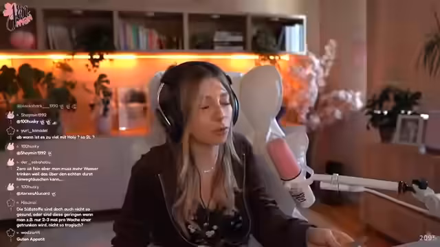 00:31:03Die Streamerin teilt ihre persönliche Reise zu einem gesünderen Lebensstil. Sie berichtet über ihren aktuellen Verzicht auf Süßigkeiten und ihre täglichen Spaziergänge, sie motiviert die Zuschauer, ebenfalls gesunde Gewohnheiten zu etablieren. Sie erklärt, dass ihr Antrieb nicht das Abnehmen, sondern die Steigerung ihrer Gesundheit und ihres allgemeinen Wohlbefindens ist. Sie nutzt die Community als Motivationsquelle und fordert sie auf, sie zur Rechenschaft zu ziehen.
