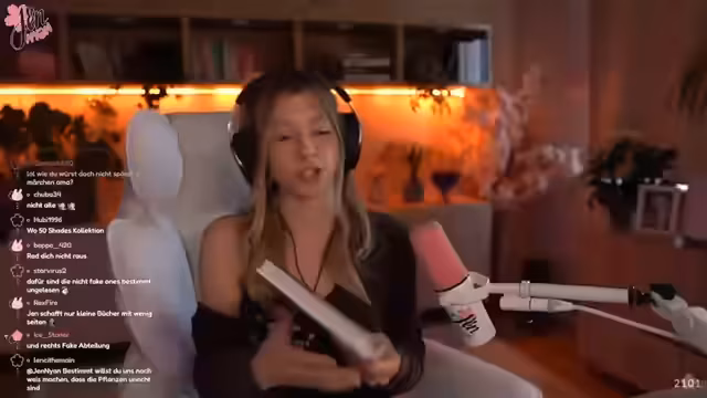 01:56:02Die Streamerin vertieft sich in psychologische Themen, angefangen mit einer Betrachtung über das Verlieben. Es wird kritisch hinterfragt, ob Verlieben wirklich alle Probleme löst oder nur temporär überdeckt. Darauf aufbauend wird das Thema Dopamin behandelt. Sie liest aus einem Buch vor und korrigiert die weit verbreitete Annahme, dass Dopamin ein Glückshormon sei. Stattdessen wird erklärt, dass Dopamin für die Wiederholung von Handlungen sorgt, die zu Befriedigung führen und sowohl gute Gewohnheiten als auch Süchten fördern kann.