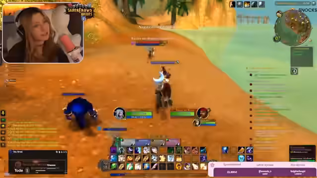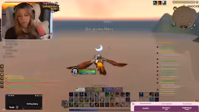09:07:07Der Stream startet mit technischen Unannehmlichkeiten, als die Streamerin versehentlich stirbt und nackt ist. Dies führt zu Frustration und Ausfälligkeiten. Sie erwähnt, dass ein Freund Level 60 erreicht hat und sie kurz vorbeischaut. Nachdem sie sich angezogen hat, geht es mit dem Spiel weiter und sie versucht, sich an die Gruppe anzuschließen, wobei sie sich bedauert, dass sie nicht wie Freunde gewartet hat.