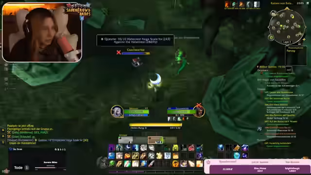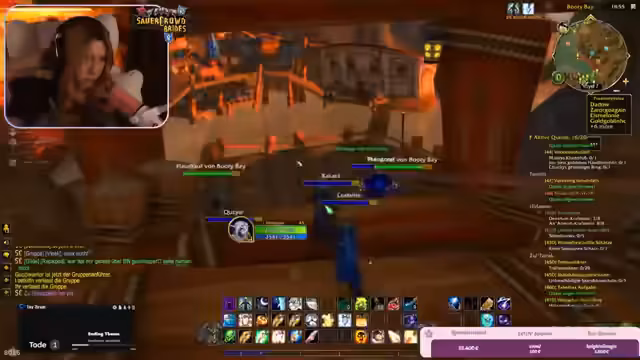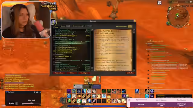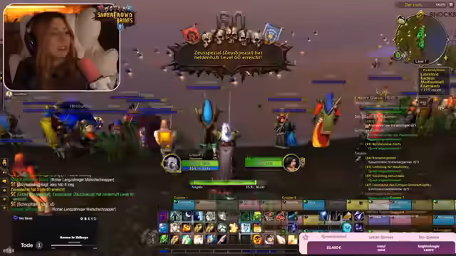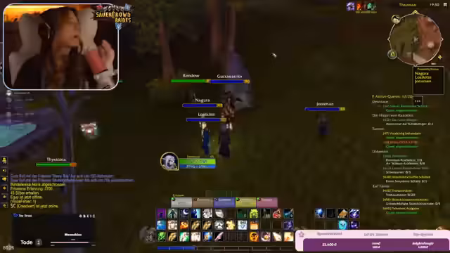 00:28:12Nach einiger Vorbereitung startet die Streamerin mit dem WoW-Hardcore-Event 'SauerKraut', bei dem über 200 deutsche Streamer gemeinsam World of Warcraft im Hardcore-Modus spielen. Das Ziel ist, Level 60 zu erreichen, wobei ein Tod den Charakter endgültig beendet. Die Streamerin betont, wie viel Spaß ihr die Gemeinschaft und der gemeinsame Kampf um das Ziel machen. Sie startet eine neue Figur, einen Nachtelfen, und beginnt ihre Quests in den Anfängen des Spiels.