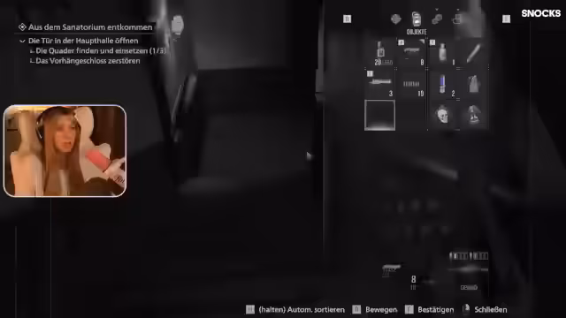 01:54:00Nachdem sie Emily in Sicherheit gebracht hat, wird Streamerin jennyan von einem mutierten Gegner verfolgt. Sie flieht durch die Gänge und sucht eine Möglichkeit, sich zu verteidigen, da sie ihre Munition verschwendet hat und Angst hat, erneut überwältigt zu werden. Die Situation spannt sich an, da sie den Gegner umgehen muss, während sie gleichzeitig weitere Rätsel und Geheimnisse in ihrer Umgebung untersucht, um voranzukommen und das Spiel fortzusetzen.