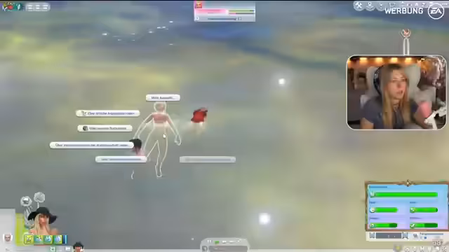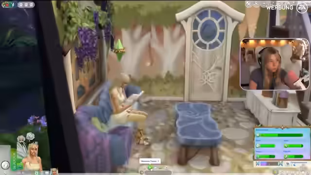 04:32:09Während der Erkundung der Welt stößt Harmony auf eine Fee. Es folgen erste, etwas unbeholfene Versuche, eine Beziehung zu derFee aufzubauen. Die Streamerin muss die Bedürfnisse der Sim im Auge behalten und versucht, durch Smalltalk und Komplimente eine Interaktion zu ermöglichen. Es zeigt sich, dass das Zusammenspiel mit übernatürlichen Wesen neue Spielmechaniken und Herausforderungen mit sich bringt.