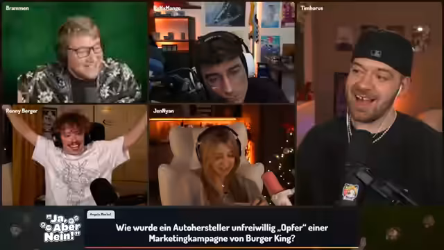 03:26:09Die Runde diskutiert, wie ein Autohersteller unfreiwillig Opfer einer Burger-King-Marketingkampagne wurde. Verschiedene Theorien werden geäußert, darunter Verwechslungen durch Abkürzungen wie 'BK' und 'GM' oder BMW-Assoziationen. Am Ende bleibt unklar, welcher Hersteller genau betroffen war, aber es geht um strategische Werbepartnerungen, bei denen Burger King Autos in Kampagnen verwendete und so unbeabsichtigt Automarken in die Schatten stellte oder mit ihnen verknüpfte.