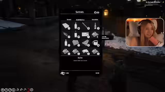 01:32:34Der Streamer beginnt mit dem Rollenspiel, stellt jedoch fest, dass aufgrund des Vorabends vor Weihnachten nur wenige Mitspieler online sind. Er berichtet, dass seine Eltern in einem Hamburg Hotel übernachten und bereits schlafen. Im Spiel taucht die Figur Briggs auf, und es entspinnt sich ein Dialog über die Figur Weber und Daniel, der seinen Job verloren hat, was für Spannungen sorgt.