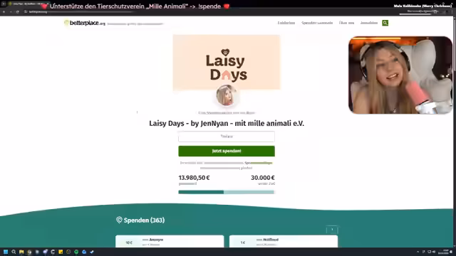 01:00:47Die Streamerin teilt persönliche Erfahrungen mit ihrer verstorbenen Hündin Lazy und betont, wie sehr sie Tierschutzprojekte unterstützt. Sie ermutigt zur Überlegung, Straßenhunde oder Welpen aus Nothilfen zu adoptieren, auch bei Allergien. Das Projekt 'Lazy Days' soll ihr Andenken an den Hund ehren und Hilfsbedürftigen helfen. Die Gemeinschaft wird aufgefordert, Spenden und Adoptionen zu erwägen.
