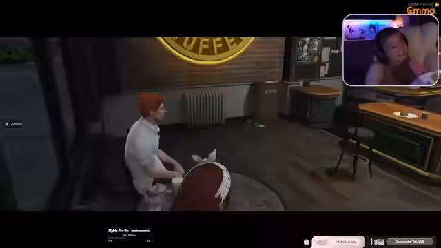 06:28:29Nachdem der Pornshop besucht wurde, wechselt der Schauplatz zum Café der Streamerin. Hier führt sie eine Person durch die Geschäftsräume, einschließlich Küche, Umkleidebereich und Lagerraum. Die Atmosphäre schlägt in eine fiktive Rolle um: Die Streamerin inszeniert ein Mitarbeitergespräch und entlässt eine imaginäre Mitarbeiterin abrupt mit Vorwürfen der Pflichtvernachlässigung. Diese Szene dient als humorvolle Rollenspiel-Sequenz.