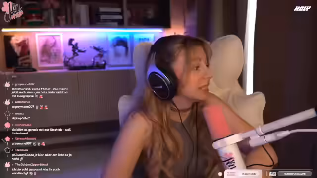 01:01:02Ausgehend von einem Chat-Eintrag über einen fiktiven Planeten tauchte die Streamer in eine tiefgründige philosophische Selbstreflexion ein. Sie kam zu dem Schluss, dass ihre eigene Existenz im unendlichen Universum irrelevant sei, was ihr eine große Erleichterung brachte. Dieser Gedanke befreite sie von der Sorge um die Meinung anderer und ließ sie sich auf ihre eigene Realität fokussieren. Sie versuchte, dieses Gedankenexperiment als befreiend zu verarbeiten und es mit der Tatsache zu verknüpfen, dass für sie selbst alles, was sie tut und fühlt, der einzig relevante Maßstab ist.