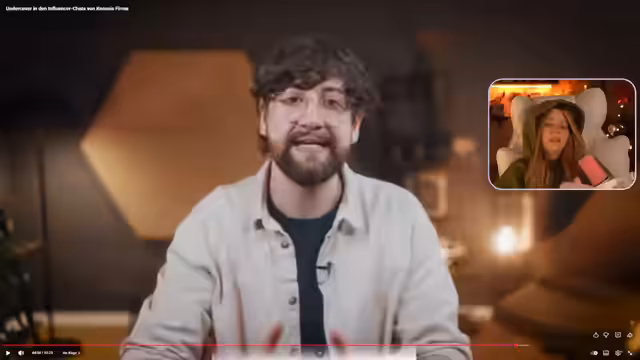 00:24:29Ankündigung, dass im Studio das Video 'Undercover in den Influencer-Chats von Knossis Firma' (55 Minuten Laufzeit) analysiert wird. Das Video behandelt mutmaßlichen gewerbsmäßigen Betrug, bei dem Influencer private Handynummern verkaufen und Chats vermeintlich persönlich, aber teils fremdbetreut führen. Der Streamer äußert Vorfreude und betont die Relevanz des Themas, das Influencer und deren Geschäftsmodelle beleuchtet.