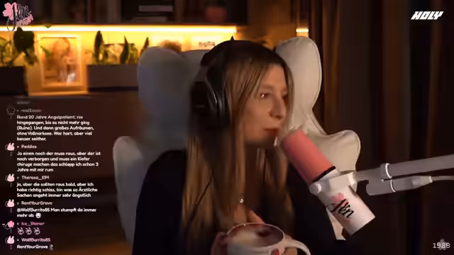 00:14:43Der Stream beginnt mit einer entspannten Atmosphäre, in der die Streamerin ihre Zuschauer begrüßt und einen schönen Donnerstag wünscht. Sie berichtet ausführlich von ihrem Zahnarztbesuch, der nach fünf Jahren der erste war. Sie schildert ihre Angst vor dem Zahnarzt, da sie in der Vergangenheit schlechte Erfahrungen gemacht hatte. Es wurde festgestellt, dass sie viel Zahnstein und Parodontose hat, was dazu führt, dass sich das Zahnfleisch zurückbildet. Sie muss in zwei Wochen erneut zum Zahnarzt für weitere Behandlungen, um das Fortschreiten der Parodontose zu stoppen. Trotz der Probleme betont sie, dass ihre Zähne ansonsten kariesfrei sind, was sie auf den hohen Zahnsteinanteil zurückführt. Sie erwähnt auch, dass alle Ärzte in Hamburg, die sie bisher besucht hat, sehr lieb und verständnisvoll waren, was sie in anderen Städten nicht erlebt hat. Des Weiteren spricht sie ihren unregelmäßigen Schlafrhythmus an und kündigt an, morgen einen freien Tag einzulegen, um diesen zu resetten und früher ins Bett zu gehen, da sie sich durch das späte Schlafengehen und Aufstehen schlecht fühlt.