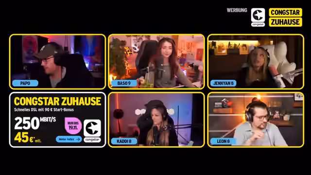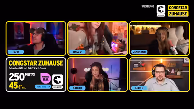 00:54:46Die Streamerin ermutigt eine Zuschauerin, Red Dead Redemption RP auszuprobieren, da es sehr viel Spaß mache und sich stark von GTA RP unterscheide. Sie hebt hervor, dass Red Dead RP entschleunigter und entspannter sei, was längere und tiefgründigere Interaktionen ermögliche. Anschließend kündigt sie eine Kooperation mit Kongstar an, bei der sie zusammen mit Baso, Papo, Leon und Kaddi an einem Gameshow-Stream teilnehmen wird. Das Event "Kongstar zu Hause" beginnt um 18 Uhr und bewirbt den Kongstar-Internettarif für zu Hause, insbesondere für WGs oder Personen, die umziehen. Das Angebot umfasst 250 Megabyte pro Sekunde für 45 Euro im Monat mit einer zusätzlichen Ersparnis von 90 Euro und ist bis zum 19. November gültig. Zuschauer können sich über den Ausrufezeichen-Kongstar-Befehl im Chat informieren. Die Gameshow beinhaltet das Bauen eines Hauses in Minecraft mit spezifischen Anforderungen wie einem Ethernet-Kabel, einem Gaming-Streaming-Raum und einem Safe Space, gefolgt von einem Spiel namens "Moving Out" und einem Quiz. Die Community darf abstimmen, wobei die Stimmengewichtung angepasst wird, um Fairness zu gewährleisten. Die Streamerin und ihre Mitspieler bereiten sich auf den Start des Minecraft-Spiels vor, wobei einige von ihnen wenig Erfahrung mit dem Spiel haben.