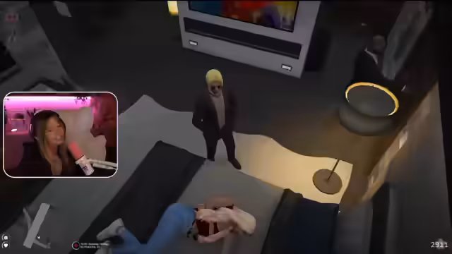 09:15:35Die Streamerin wohnt in einem Turm namens Del Piero, in dem pro Etage nur eine Wohnung existiert und man einen tollen Ausblick hat. Sie besitzt fünf Autos und begründet dies damit, dass sie sie einfach cool findet. Später entdeckt sie ein Lagerfeuer mit Menschen, die das Lagerfeuerlied singen, Fische angeln und grillen. Die Streamerin überlegt, ob sie sich ans Feuer setzen würde, entscheidet sich aber dagegen, um nicht aufzudrängen, und erkennt, dass sie ein introvertierter Mensch ist.