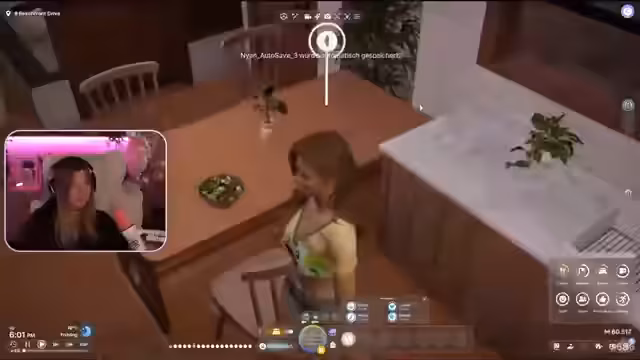 02:27:31Nach der intensiven romantischen Interaktion konzentriert sich die Streamerin wieder auf die Alltagsroutine der Spielfigur. Sie lässt die Figur unter anderem essen und cremen. Allerdings stoßen sie und ihr Partner Mario auf seltsame und unlogische Reaktionen von NPCs, die die Streamerin als verwirrend und buggy beschreibt. Auch die Handlung eines anderen NPCs, der ohne ersichtlichen Grund an sich riecht, wird thematisiert und wirft Fragen über das Verhalten der KI im Spiel auf.