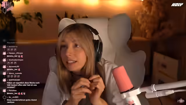 01:26:11Die Streamerin spricht über ihre aktuelle Lebenssituation, in der sie sich momentan sehr schämt, ohne einen spezifischen Grund zu nennen. Sie teilt mit, ein Angebot erhalten zu haben, dessen finanzielle Belastung und der damit verbundene Lernaufwand sie sehr anstrengen, da sie sich plötzlich mit Begriffen wie Euribor, Sondertilgung und Zinssatz auseinandersetzen muss. Gleichzeitig entwirft sie eine fantasievolle Zukunftsvision, in der sie einen eigenen Hof besitzt, auf dem sie Übernachtungspartys für ihre Freundinnen organisieren kann.