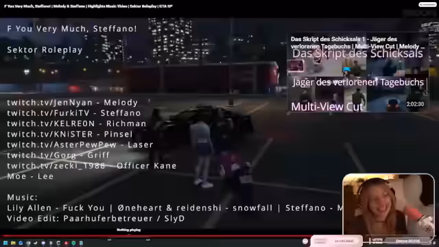 05:20:19Die Handlung ist von zahlreichen, absurden Pannen und Missverständnissen geprägt, wie der Klage über eine grüne Gesichtsfarbe und der Konfrontation wegen einer 'gestohlenen' Tasche. Die Dialoge sind geprägt von schnellem Wortwitz und sarkastischen Kommentaren der Streamerin, die sich über die seltsamen Umstände und die anderen Figuren im Spiel lustig macht.