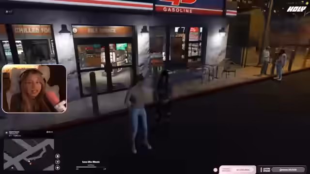 05:58:55Nach der Begegnung setzt die Streamerin ihre Erkundungen fort und stellt fest, dass sie die einzigen Personen sind, die durch die Stadt laufen. Sie vergleicht dies mit ihrem gewohnten Gameplay in Red Dead Redemption. An einer Tankstelle bemerkt sie, dass die Laufgeschwindigkeit nicht geändert werden kann und dass das Spiel noch nicht alle Features freigeschaltet hat. Sie versucht vergeblich, Essen zu bestellen und findet heraus, dass man sich ein Auto beim Gebrauchtwagenhändler besorgen muss, um sich fortzubewegen.
