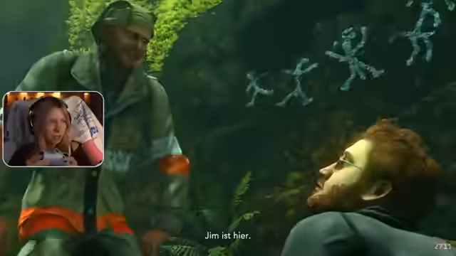 07:09:17Ein unerwarteter Notfall unterbricht das Spiel. Ein Zuschauer namens "Cedric" verletzt sich am Fuß und braucht medizinische Versorgung. Nach der Versorgung des Verletzten wird die Story des Spiels fortgesetzt. Die Streamerin erzählt von einem weiteren Charakter, "Jim", der "Nate" hilft und ihn zu einem Ort namens "Poison Swamp" begleiten will.
