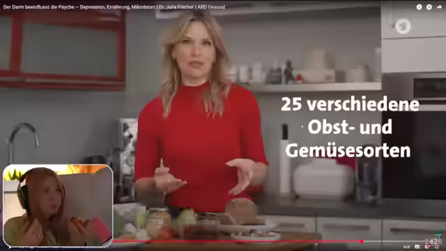 00:26:28Es wird über Hautprobleme im Gesicht gesprochen, die sich über Nacht verschlimmert haben. Morgen steht ein Termin beim Hautarzt an, um die Pickel untersuchen zu lassen. Es wird diskutiert, ob es angebracht ist, wegen Pickeln zum Hautarzt zu gehen. Einige Zuschauer haben den Tipp gegeben, auf die Darmgesundheit zu achten und Probiotika zu nehmen. Der Streamer hat Kefir ausprobiert, ein Joghurt-Milchprodukt mit vielen Darmbakterien. Es wird ein Zusammenhang zwischen Stress und Hautbild vermutet. Der Streamer plant, sich mit dem Thema Darmgesundheit auseinanderzusetzen und eventuell ein Video dazu anzusehen. Es wird ein Video über den Einfluss des Darms auf die Psyche und Depressionen angekündigt. Der Streamer berichtet von persönlichen Erfahrungen mit Bauchschmerzen bei Stress und Durchfall bei Eifersucht. Es wird die enge Verbindung zwischen Bauch und Kopf erläutert, einschließlich der Rolle von Ernährung und Darmbakterien. Es wird darüber gesprochen, wie Darmbakterien Glückshormone wie Oxytocin und Serotonin produzieren können.