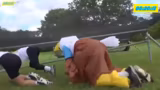 04:14:14Alle Teams haben nun das Ziel erreicht. Letztendlich schaffen auch die Gorillas, die als elftes und damit letztes Team ins Ziel kommen, den Lauf. Der Kommentator lobt ihr Durchhaltevermögen und ihre Anstrengung. Mit dem Einlauf des letzten Teams endet der Wettbewerb, und die Siegerehrung kann vorbereitet werden. Applaus und Anerkennung werden allen Teilnehmern zuteil.