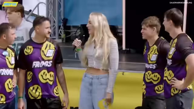 01:52:36Die Frogs (Ette Schnappen, LeonTV, Roofless Domi und Roofless Fredo) präsentieren sich selbstbewusst, aber humorvoll besorgt über ihr Fitnesslevel im Vergleich zu ihrem Quizwissen. Sie betonen ihren Kampfgeist und Teamzusammenhalt. Die Sharks (Hungriger Hugo, Dennis König, Strong is Mom und Emma Svenningsen) gehen trotz kurzfristiger Teilnahme unvorbereitet, aber zuversichtlich ins Rennen. Sie setzen auf Spontanität und Teamgeist. Das Team Dragons (Verena, Kunji Kitty, Harkon und Small Curly Fry) demonstriert Kampfgeist und mentale Stärke, indem sie die Konkurrenz bereits im Vorfeld psychologisch unter Druck setzen. Sie wollen Dominanz zeigen und die anderen Teams mental vernichten. Abschließend werden die Raptors (Inscope, Lia Mitruhr, Julia Römmelt und Jasper Schlappen) vorgestellt, die sich ebenfalls nicht vorbereitet haben, aber mit dem Motto 'Wenn Hindernisse kommen, einfach drüber' antreten. Sie haben einen speziellen Teamruf einstudiert und demonstrieren großes Selbstvertrauen.