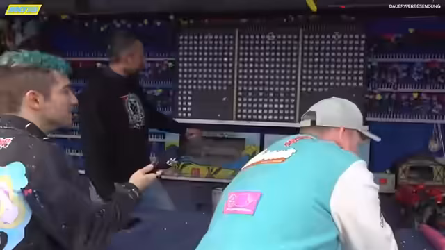 03:04:13Die Teams stehen vor dem besten Hindernis bisher, das Klettern und das Beantworten von Fragen beinhaltet. Ein Teammitglied mit Höhenangst wird ermutigt, teilzunehmen, aber nicht gezwungen. Der Fokus liegt auf Teamarbeit und gegenseitiger Unterstützung. Knossis Frau wird für ihre Leistung gelobt. Es wird diskutiert, ob man die Schuhe vor dem Wasserhindernis ausziehen sollte oder nicht. Die Teams setzen ihre Reise fort, wobei Rezo den Fahrstil demonstriert. Die Strecke führt durch verschiedene Hindernisse, darunter ein Schaumbad. Ein Stromausfall beeinträchtigt kurzzeitig die Kameras, aber das Problem wird behoben. Die Kommentatoren informieren über die Strecke und die bevorstehenden Hindernisse wie Autokran, Holitären und Federn.